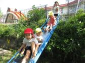 下の園庭に続く滑り台。「みんなですべろ~!」