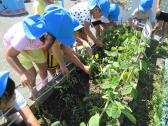 園庭で育てた枝豆を収穫しました。