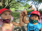 下の園庭でセミの羽化を発見!