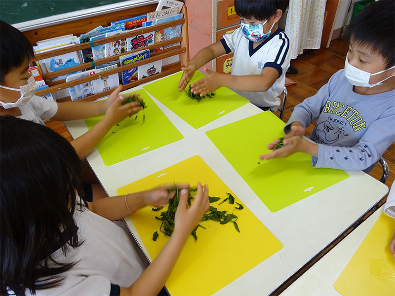 年長さんは自分達で摘んだお茶の葉でお茶を飲んでみたい!と子ども達の声から、お茶づくりに挑戦!何度も揉んで美味しくなぁれ。