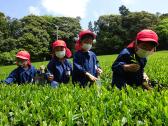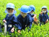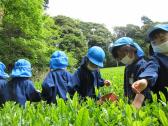 5月初旬に年長さんと年中さんでお茶摘みをしてきました。2回目の年長さんは手慣れた様子。